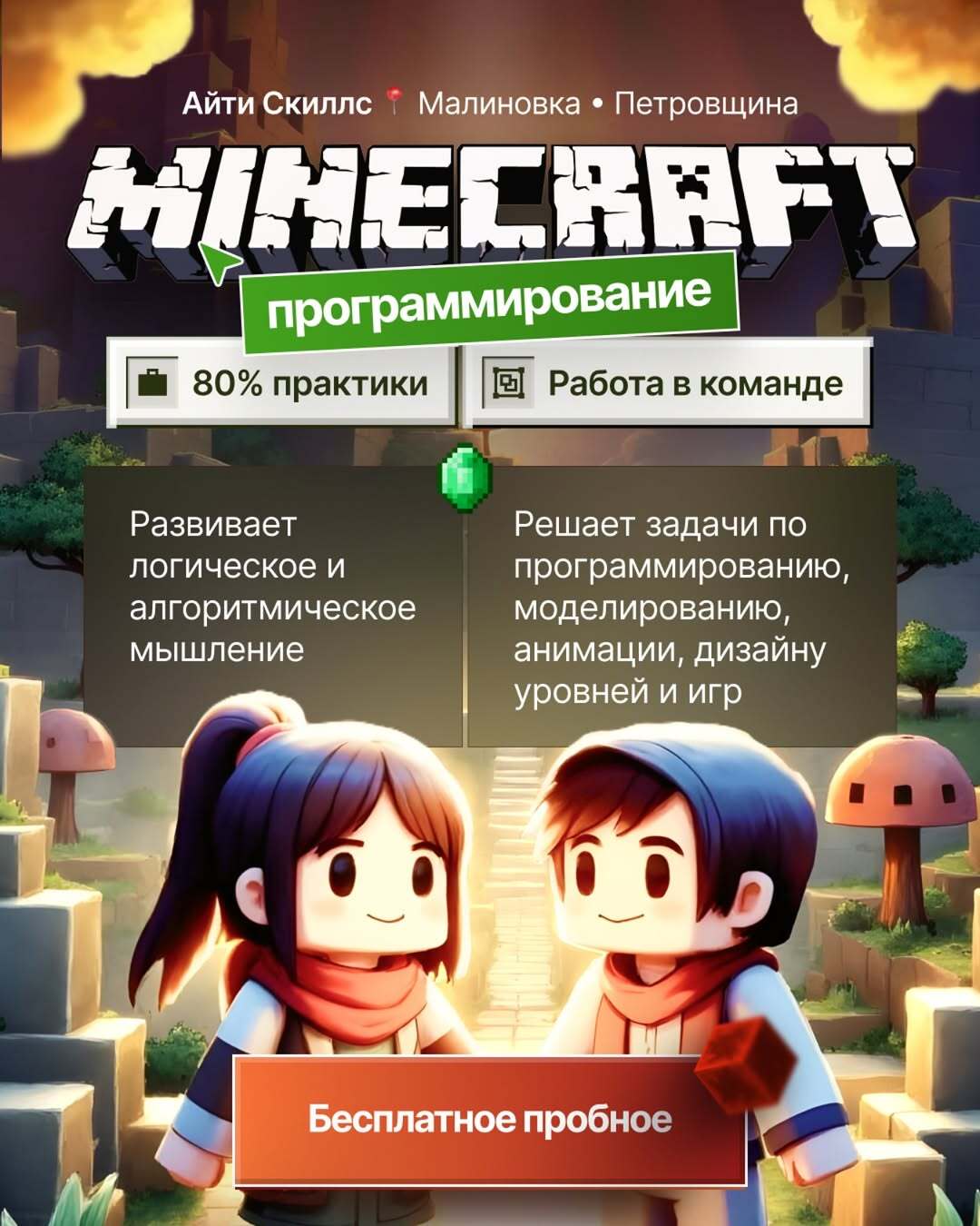Представьте: ваш ребёнок не просто играет в Minecraft, а создаёт в нём целые миры с помощью кода!